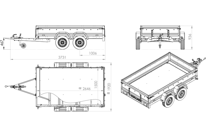 - Zubehör auf Anfrage: Planen/Aufsatzborde, Zurrpunkte, Stützrad, Reserverad