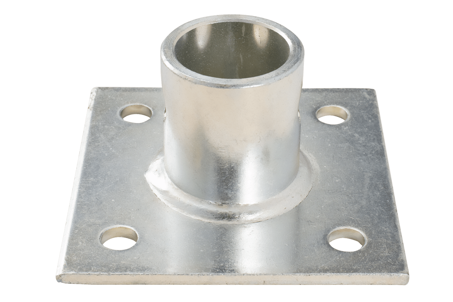 Stützfuß-Adapter für PKW-Anhänger und Aufbauten, passend zum SIMOL Kurbelstützen-Modell S.170033. Dient als stabile Aufnahme an Rahmen/Chassis und sorgt für sicheren Stand sowie zuverlässige Lastabtragung im Stillstand.