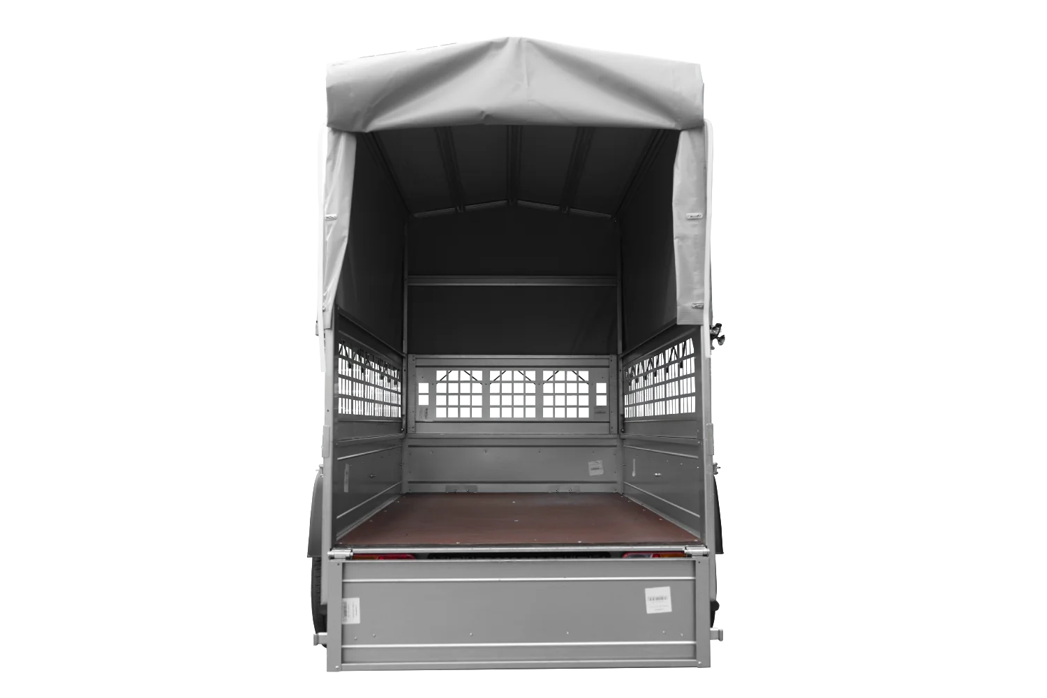 Blechanhänger 200×106 – Garden Trailer 200 KIPP, Gitteraufsatz & Hochplane