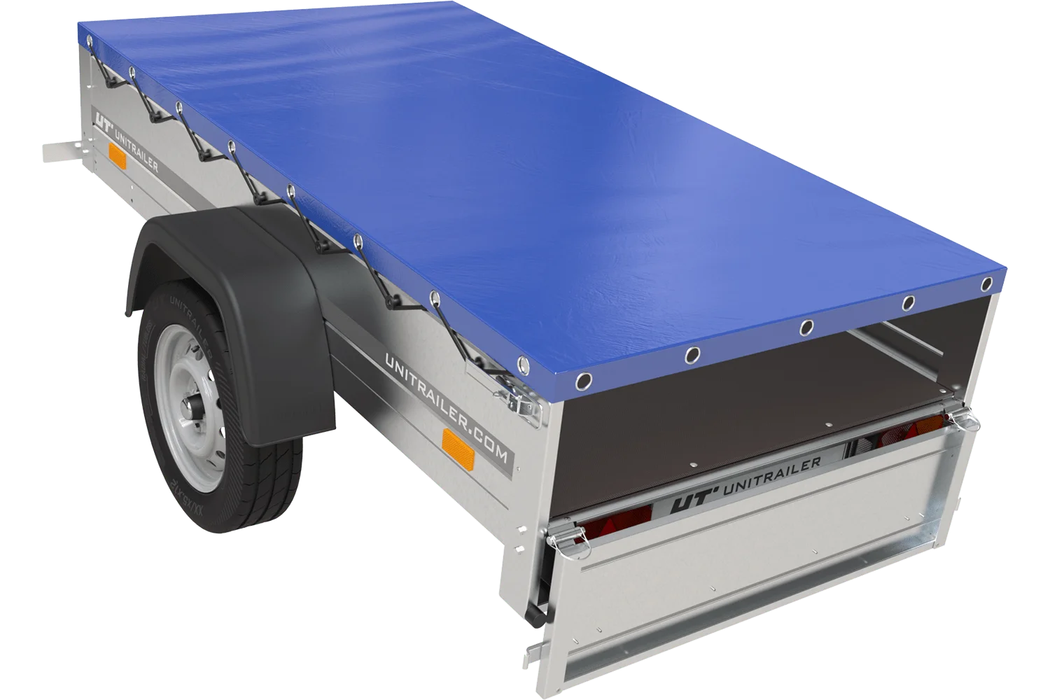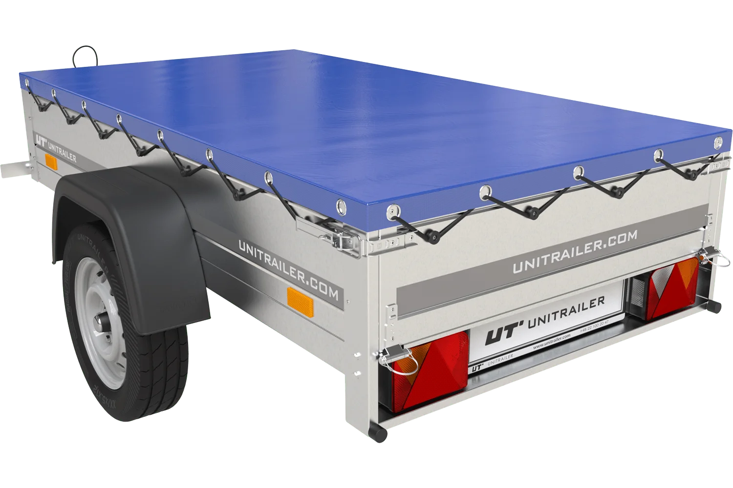 Kompakter, wendiger Gartenanhänger mit Flachplane und Stützrad – robust verzinkt, einfach zu handhaben und flexibel für alltägliche Transportaufgaben.