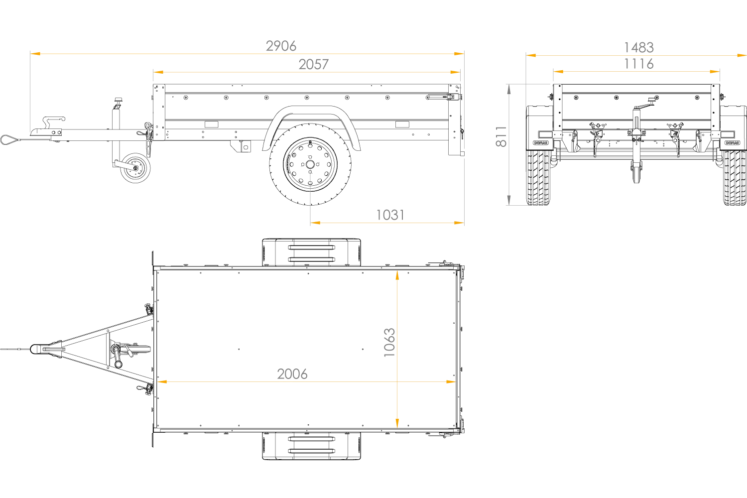 - Bordwände: verzinkter Stahl; Heckbordwand öffn- und abnehmbar