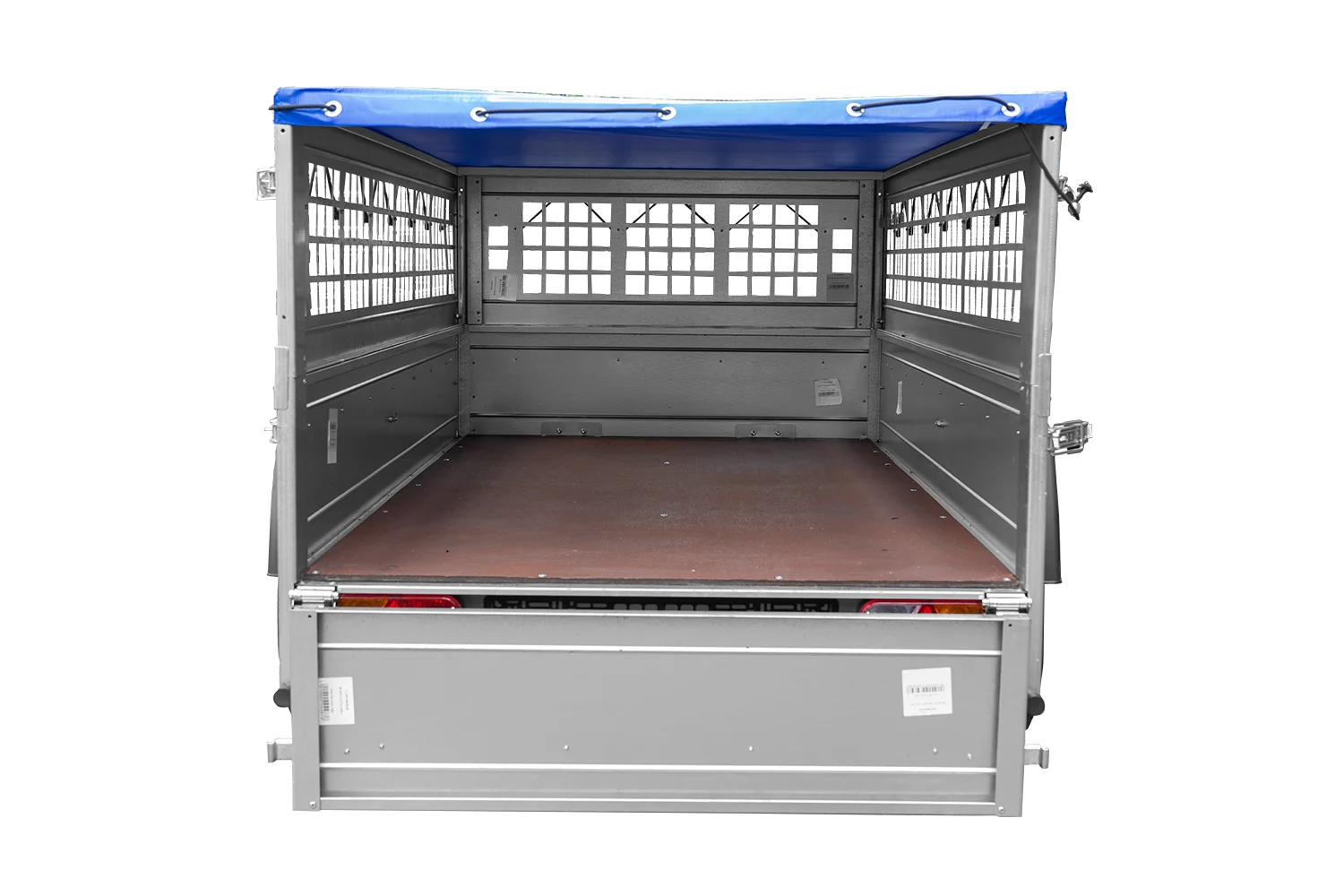 Gitteraufsatz-Anhänger 200×106 – Garden Trailer 200 KIPP, blaue Plane