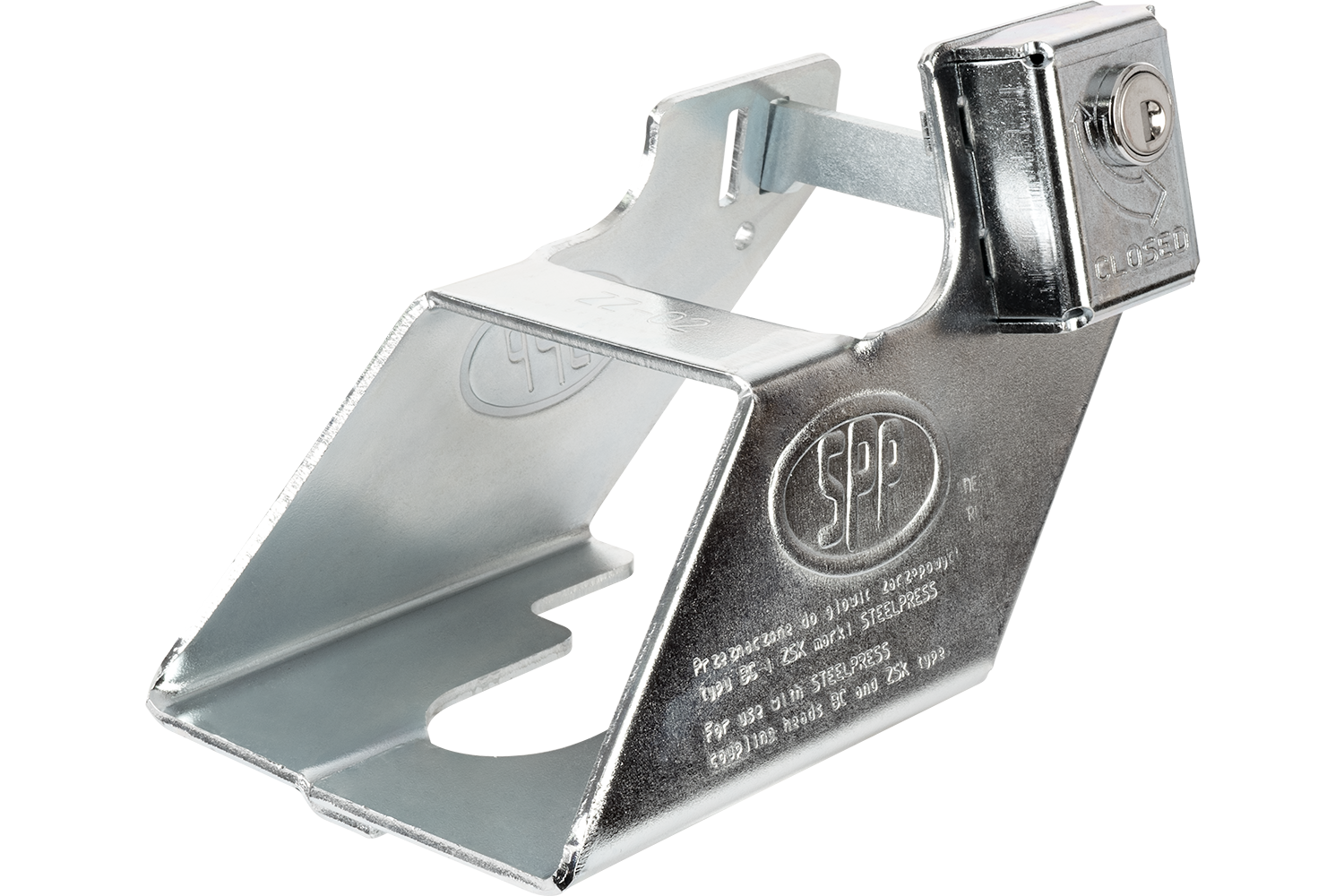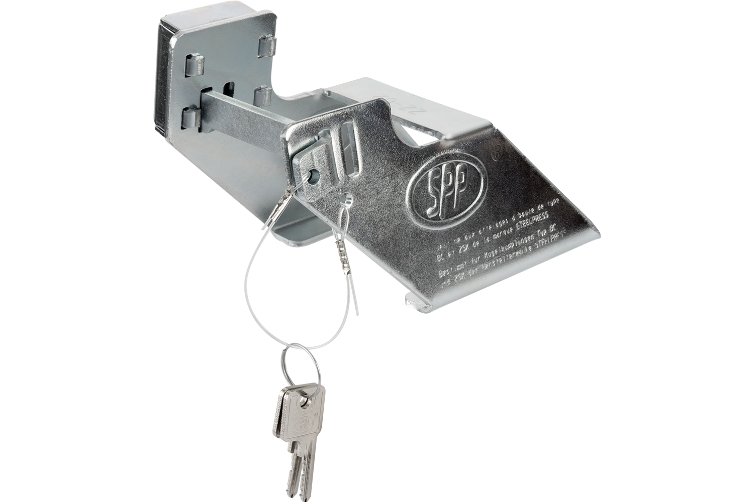 Universelles Kupplungsschloss für PKW-Anhänger. Das Steelpress ZZ-02 sichert leichte Anhänger gegen unbefugtes An- und Abkuppeln und kann im Stand sowie bei angekuppeltem Anhänger verwendet werden.