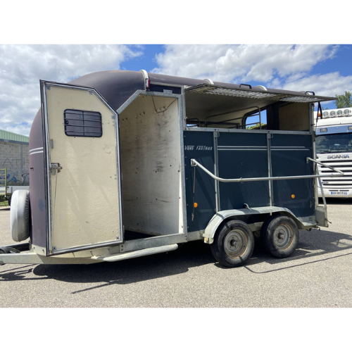 Zwei-Pferde-Anhänger von Fautras für diagonale Verladung (Kopf schräg nach vorn). Baujahr 2007, laut Angabe neu; Farbe: marineblau. Heckrampe, US-Hecktüren, rutschhemmender Bodenbelag und Mehrpositions-Lüftung für praxisgerechten Einsatz im Stallalltag.